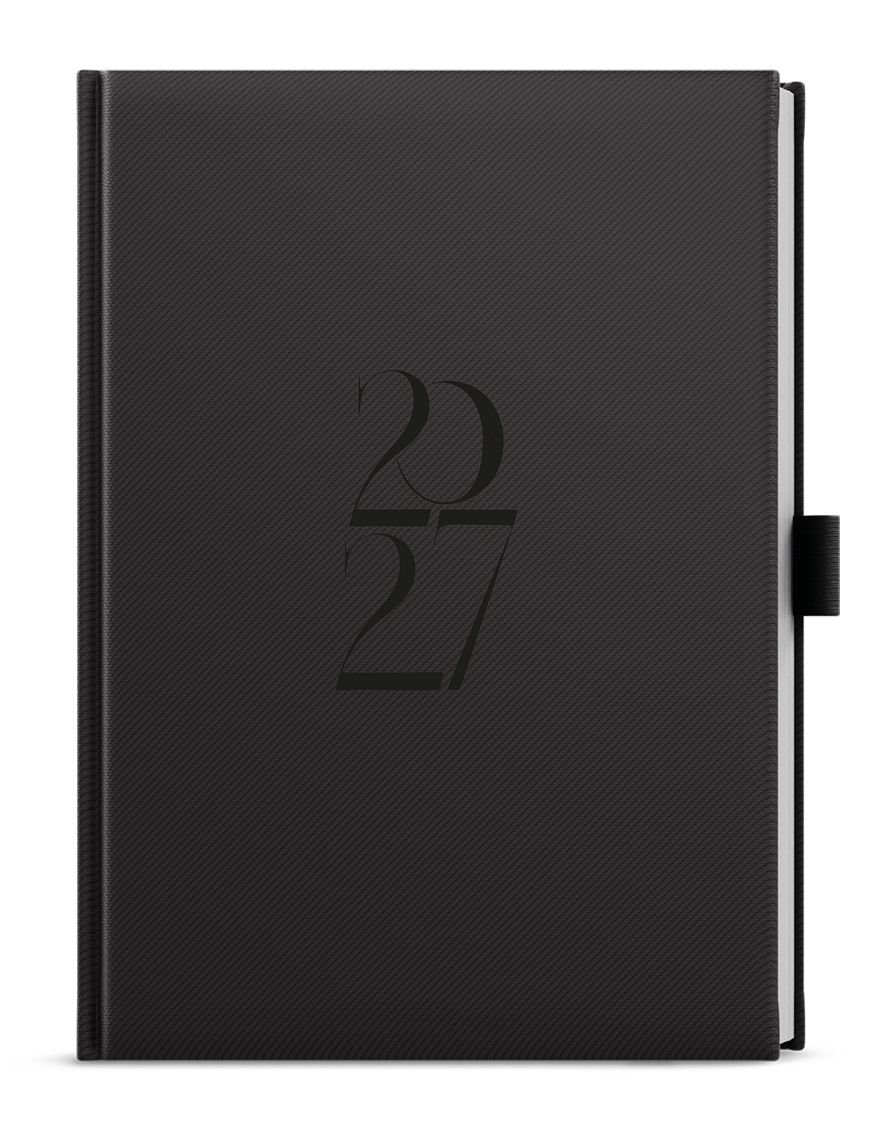 Týdenní diář z jemně strukturovaného materiálu a poutkem na tužku je vyráběný ve formátu A5 s prostorem pro plánování a poznámky.