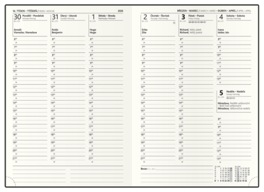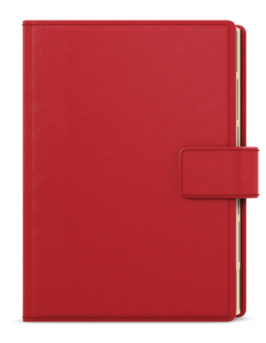 Elegantní týdenní diář ve formátu A5 se stylovým a znovupoužitelným obalem v červené barvě. Praktické vnitřní uspořádání nabízí množství přihrádek na vizitky, poutko na tužku a bezpečné magnetické zavírání. Diář bude působit luxusně a profesionálně – ideální volba pro práci, podnikání i osobní organizaci.