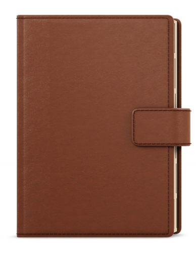 Elegantní týdenní diář ve formátu A5 se stylovým a znovupoužitelným obalem v hnědé barvě. Praktické vnitřní uspořádání nabízí množství přihrádek na vizitky, poutko na tužku a bezpečné magnetické zavírání. Diář bude působit luxusně a profesionálně – ideální volba pro práci, podnikání i osobní organizaci.