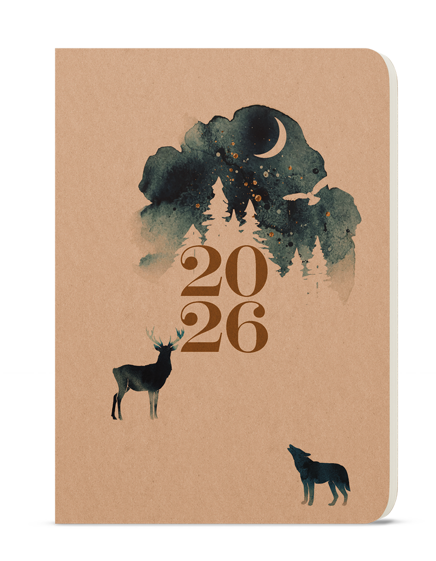 Týdenní diář s obalem v přírodním provedení. Módní doplněk s prostorem pro poznámky a plánování.