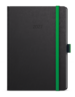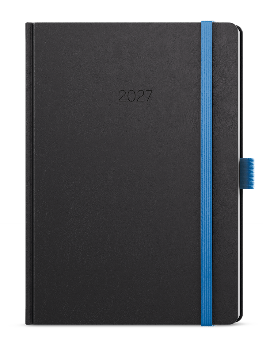 Neobyčejný týdenní diář s matným povrchem ze strukturovaného materiálu se zelenou gumičkou a poutkem. Je vyráběný ve formátu A5, má velký prostor pro poznámky a plánování.