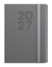 Týdenní diář formátu A5 vyrobený ze strukturovaného materiálu v šedé barvě a s gumičkou. Oblíbená grafika vnitřního bloku Vám pomůže účelně plánovat Vaše dny.