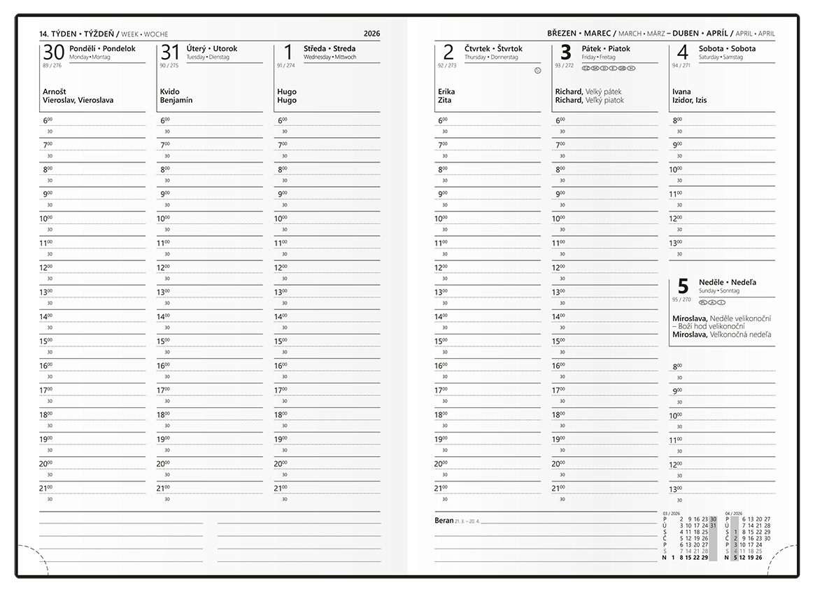 Týdenní diář A5 vyráběný z jemného materiálu - vivelly. Diář je velmi praktický a pomůže Vám efektivně naplánovat Váš týden.