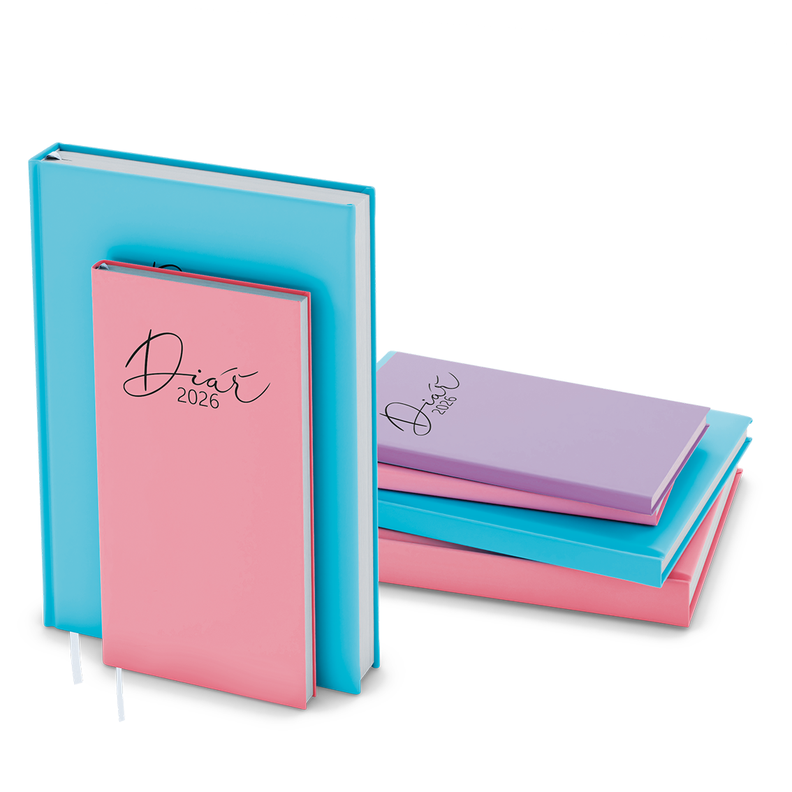 Trendy a praktický týdenní diář v pastelově modrém odstínu, potažený nepoškrabatelným matným laminem s parciálním lakem. Diář má velký prostor pro poznámky a plánování.