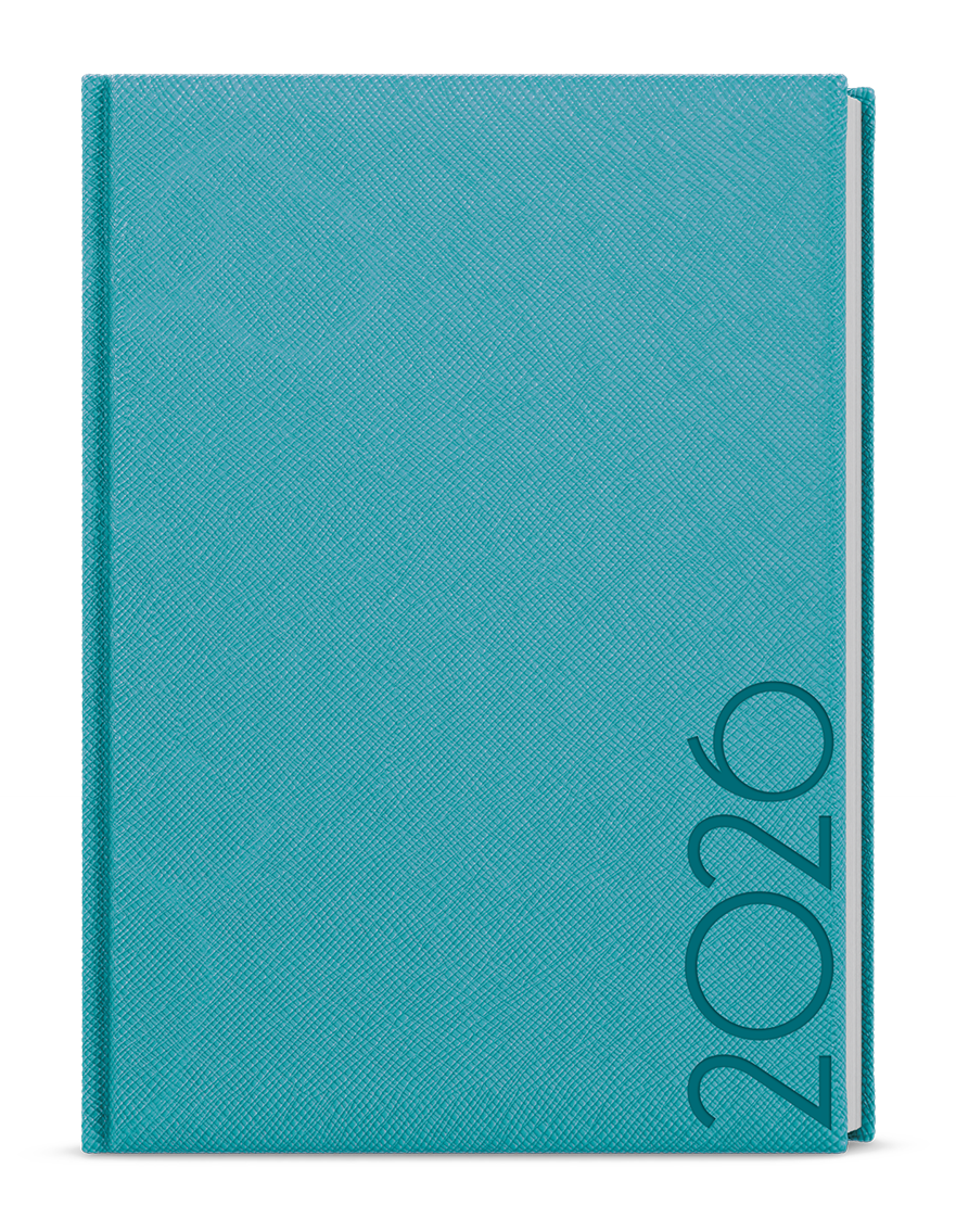 strukturovaný materiál s lesklým povrchem, ražba roku, jednostranná pěnová výplň desek, šitá vazba V8, stužka, perforované rožky, vlepená kapsa, ofset, 70g/m2