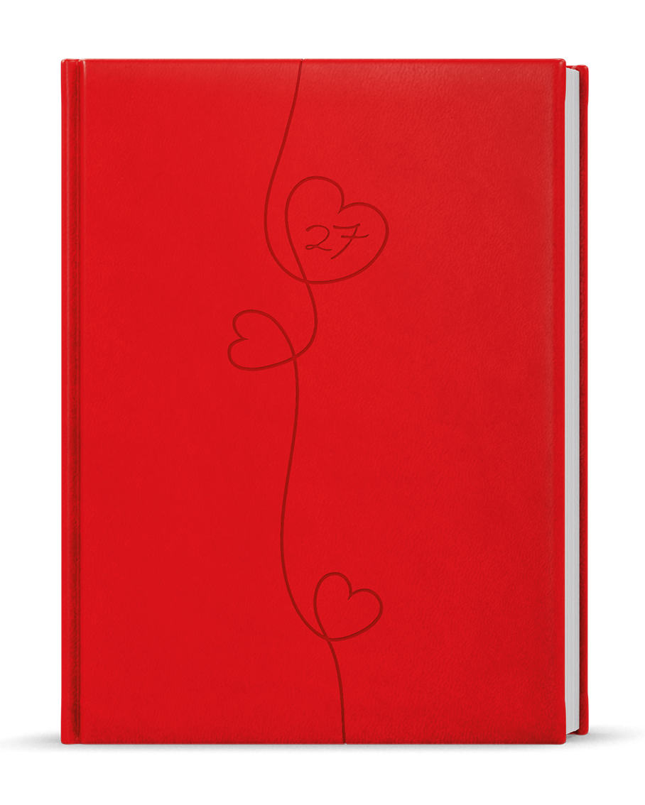 Týdenní diář v červené vivelle s krásnou ražbou s motivem Srdce. Diář v oblíbeném formátu s velkým prostorem pro poznámky a plánování.