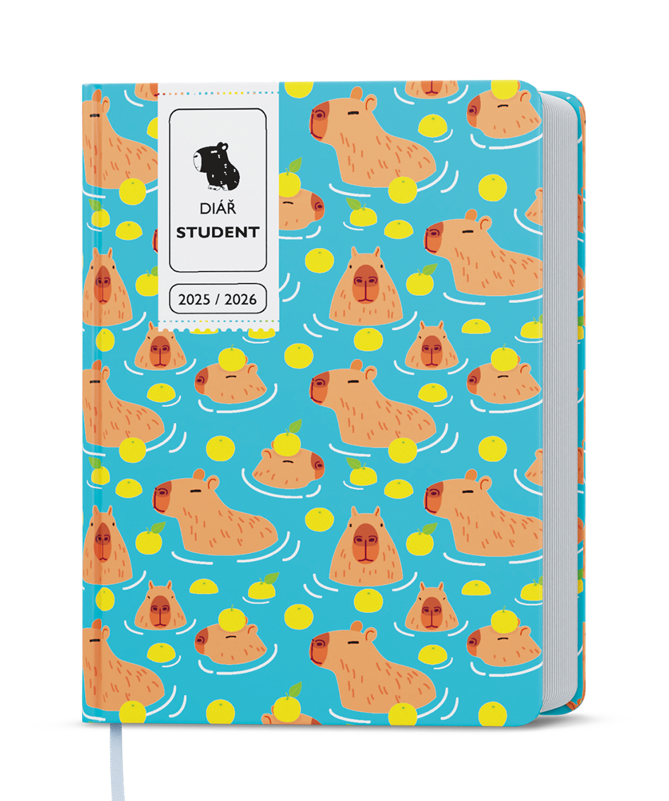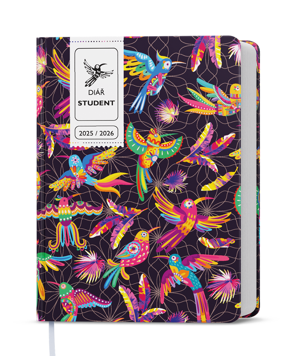 tištěná grafika potažená nepoškrabatelným matným laminem s parciálním lakem, šitá vazba V8, stužka, perforované rožky, kulaté rohy