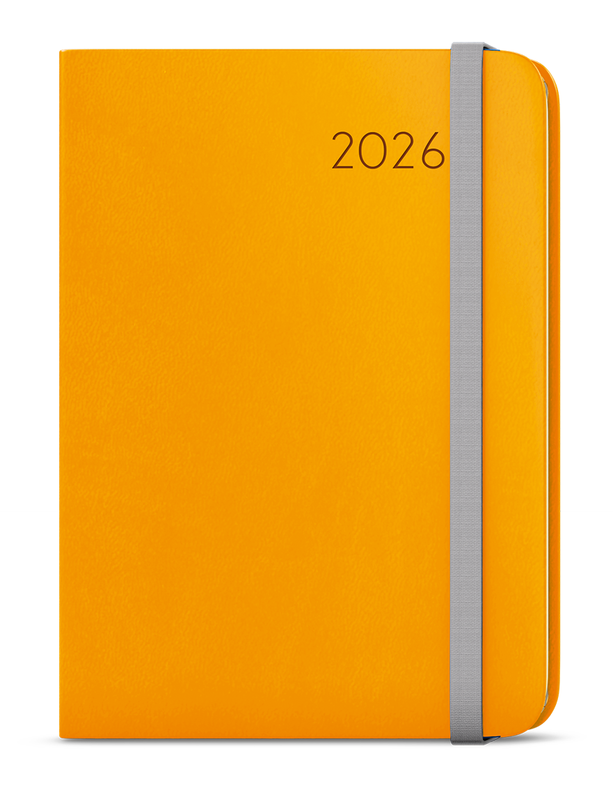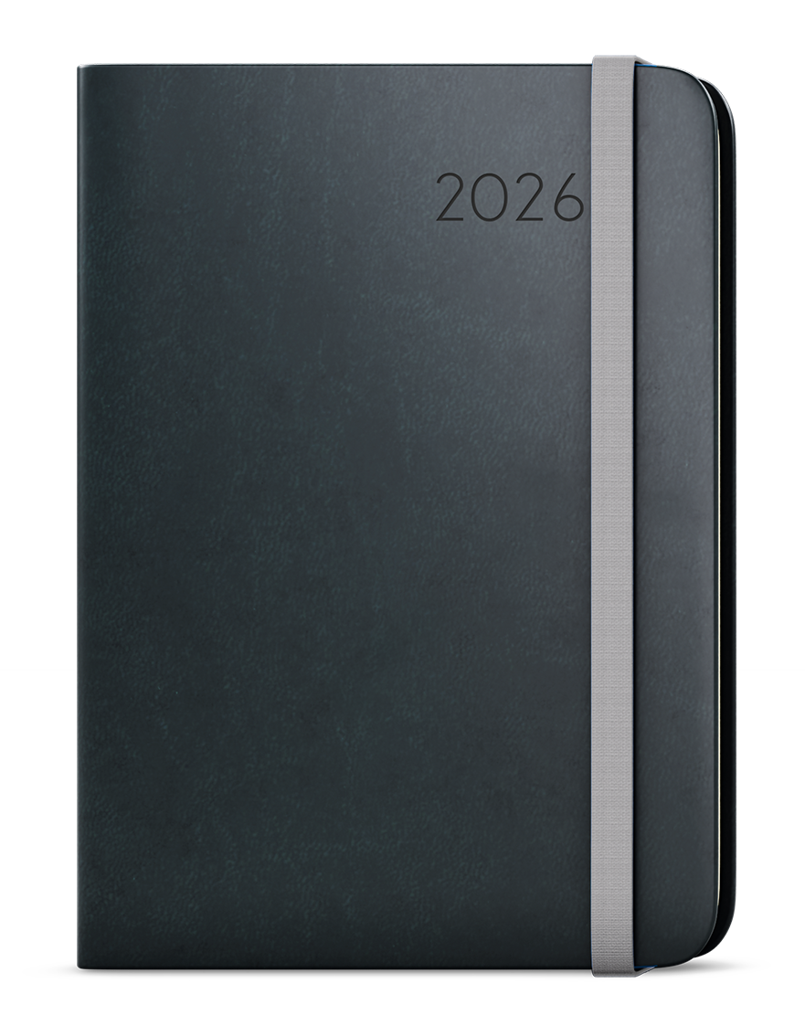 Diář s týdenním kalendáriem na jedné straně a na druhé straně s prostorem na poznámky. Desky jsou ohebnější, mají moderní ražbu, kulaté rohy a gumičku.