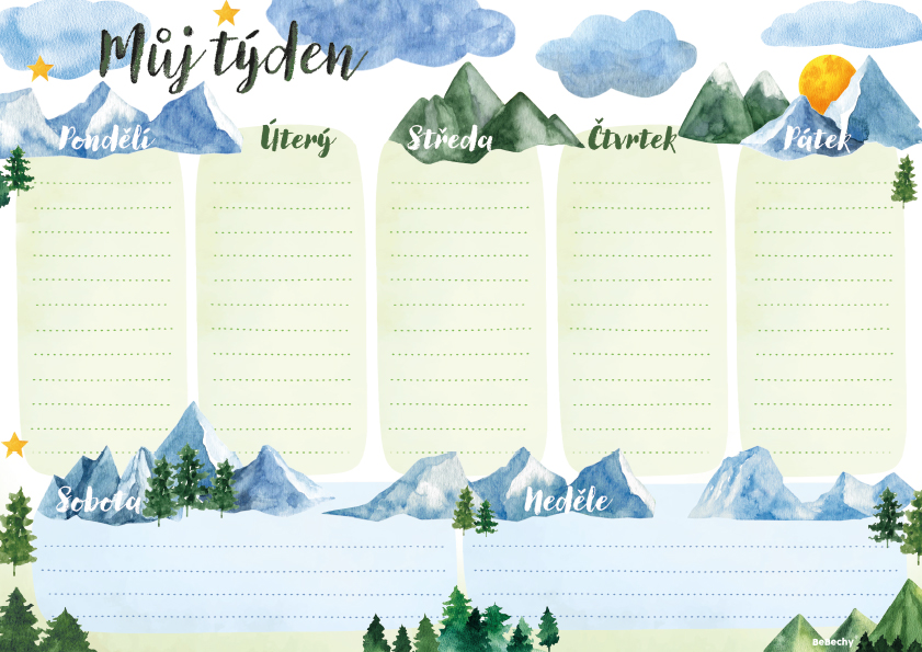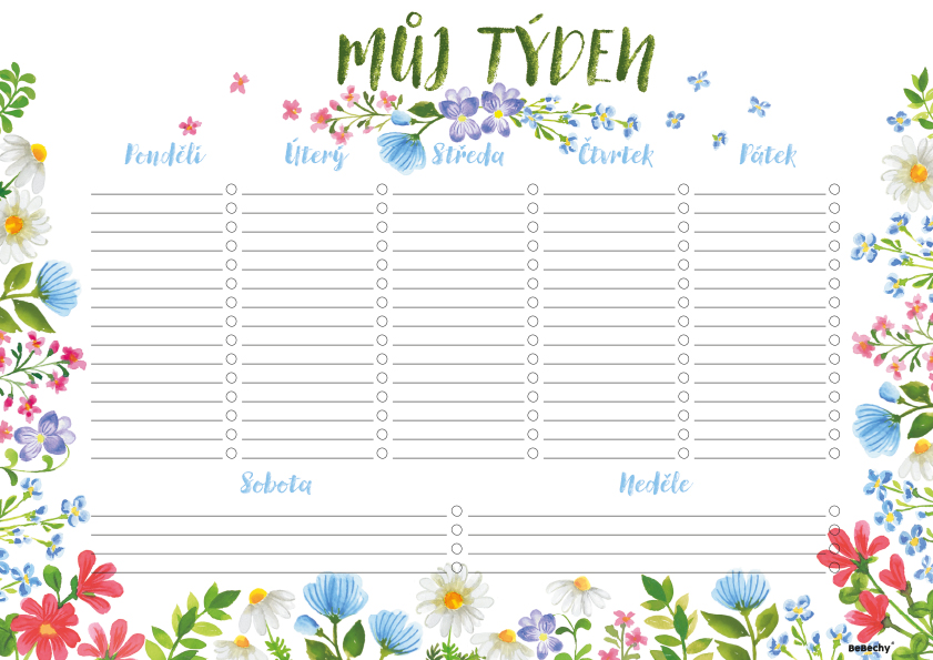 Strukturovaný přehled týdne, který vám pomůže lépe rozvrhnout čas. Nabízí prostor pro pracovní úkoly, schůzky i osobní poznámky. Skvělý nástroj pro každodenní organizaci bez stresu.